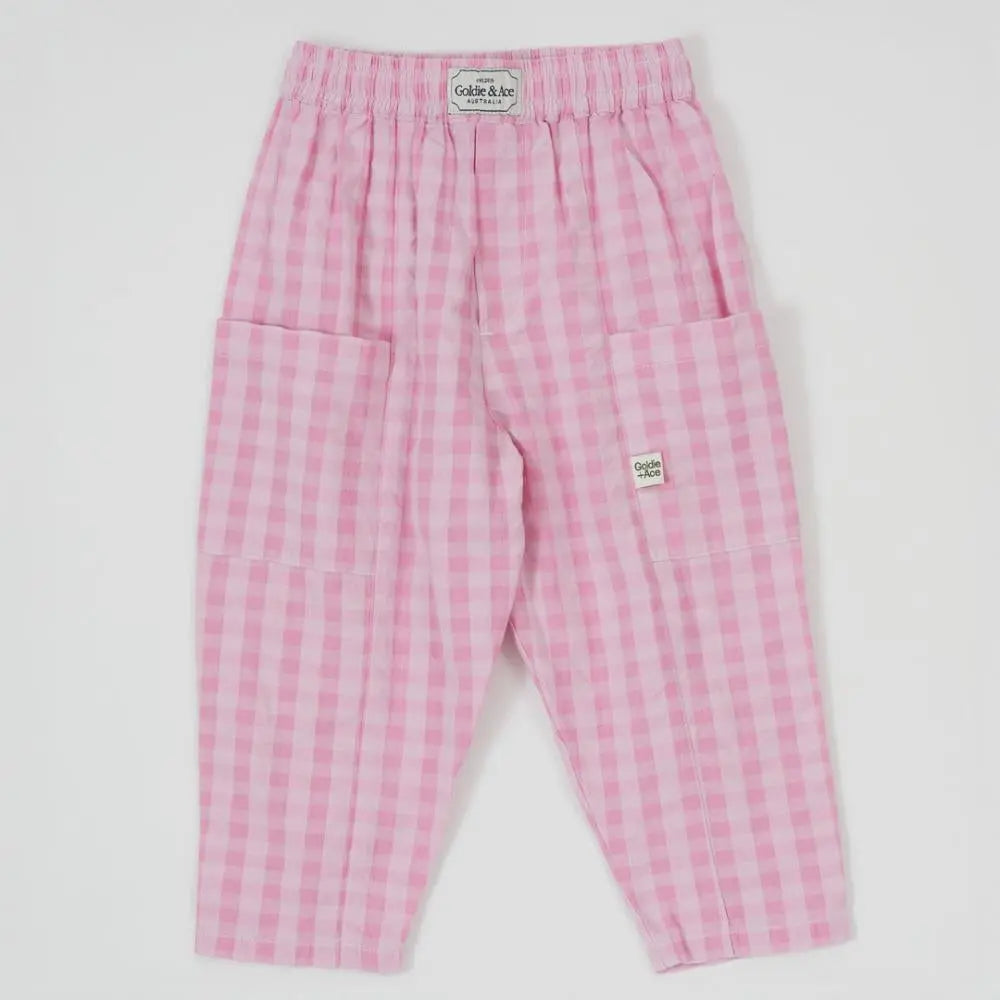 Kid Lightweight Gingham Kit Pocket Pant Pink