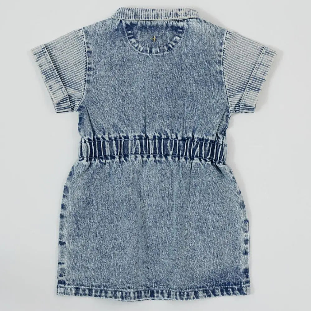 The Toddler Piper Pinstripe Denim Belted Dress by Giggles LA is crafted from classic pinstripe denim and features a belted waist for a playful, adjustable fit. Designed for comfort and style, this versatile dress is perfect for everyday wear or special outings.